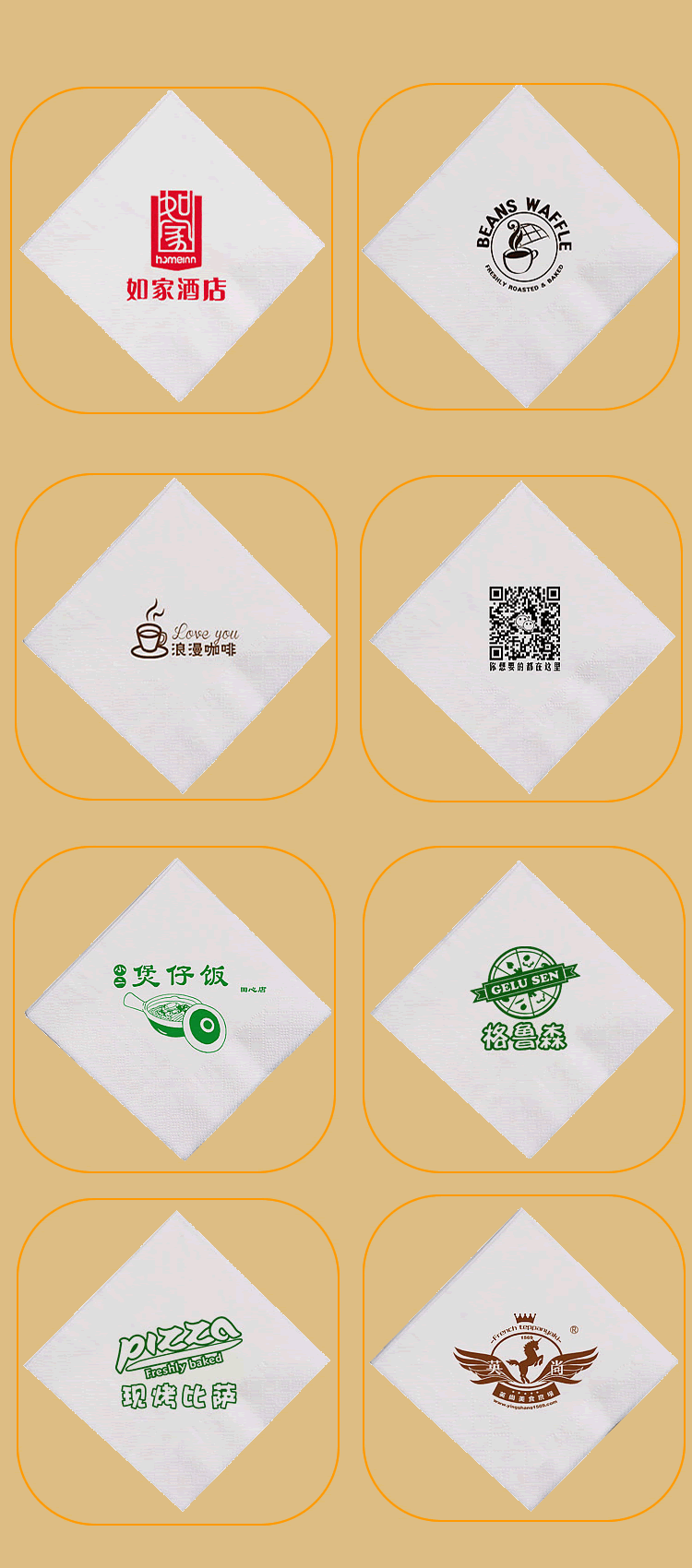 合肥億竹紙品包裝有限公司是一家專業從事各種生活用品定制的企業,定制熱線:18919603840(周經理)。公司與各大餐飲行業、酒店、加油站、學校、KTV娛樂會所、銀行、汽車4S店、房地產、廣告公司等客戶長期合作,業務覆蓋安徽全省。公司主營產品:廣告盒抽定制、餐巾紙定制、大盤紙、擦手紙、散抽紙等。有著完善的生產硬件設備和專業技術,及長期從事的豐富經驗。 我廠專注生活用品多年,致力于生產“精致,高端,綠色,健康”于一體的優質產品,以誠信、實力和產品質量獲得業界的認可。目前我廠產品已深得寶馬汽車、重慶劉一手火鍋餐飲連鎖、萬達集團、綠地集團等眾多客戶的青睞,業務量不斷攀升。
